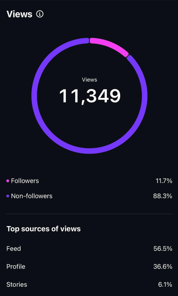 Increased views from non-followers on personal fitness platform and increased total views by 2,688.45%. Positioned as both athlete and creative professional, bridging fitness and media.